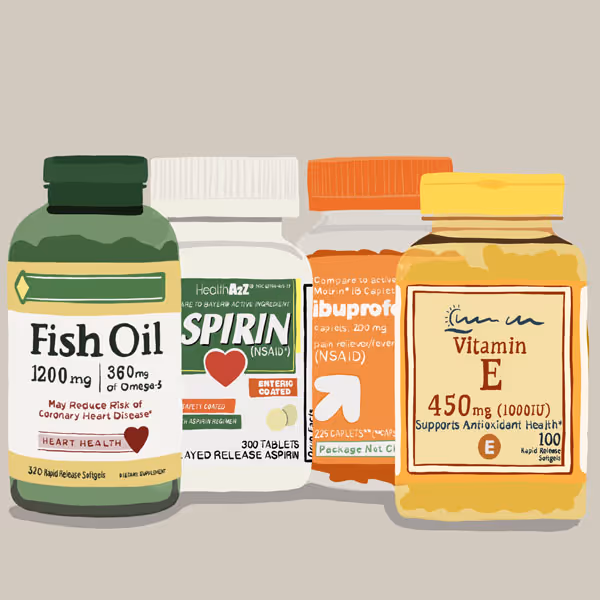 No aspirin, ibuprofen, other non-steroidal anti-inflammatory medications, blood thinners, vitamin E, fish oil, herbal supplements, garlic, or any medications containing these or anything that may thin your blood, 14 days before surgery.